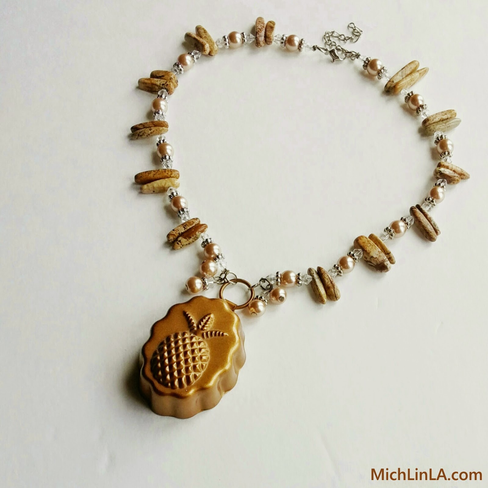 Here's a different version - this time, keeping the original ring that came with the mold. Some coppery-pink pearls and little spears of picture jasper compliment the pendant's tone.