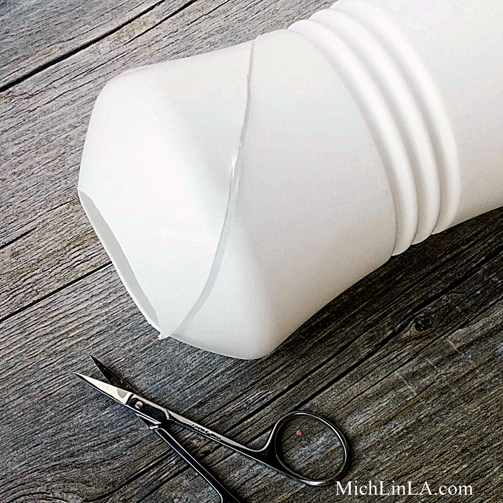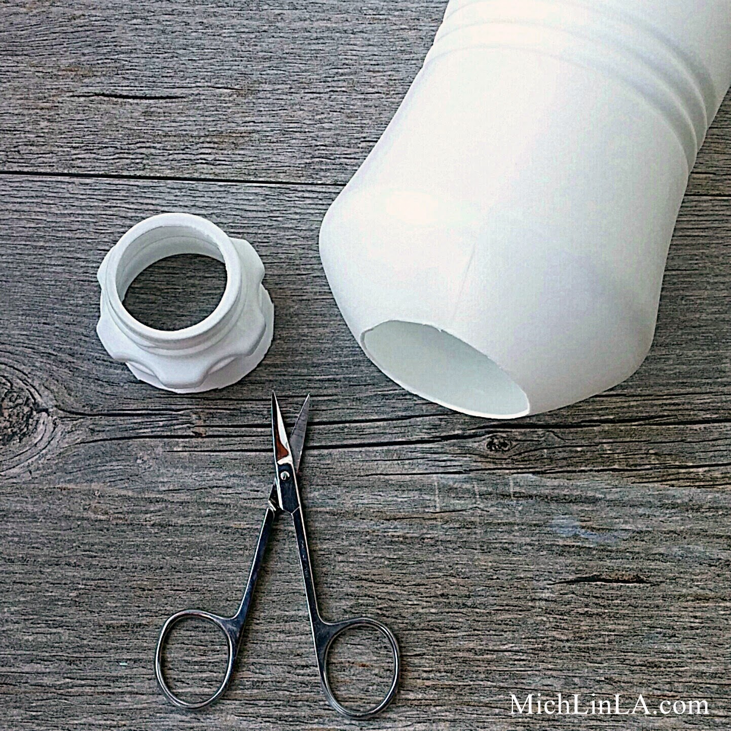 Find a bottle and cut away the neck. You can use most any opaque plastic bottle; doesn't have to be milk.