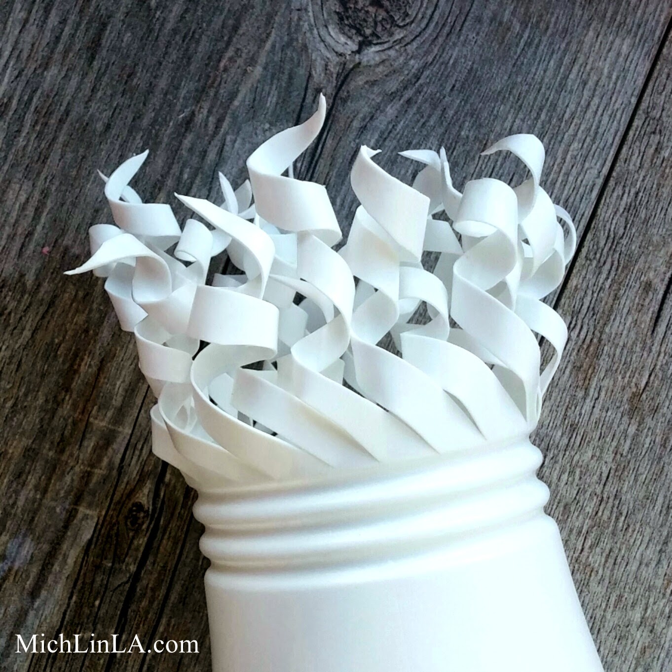 Okay, back to the vase. Keep going until all the strips are curled. This takes a little patience, because all those corkscrewy little things tend to get in each others' way. If you have to say a bad word, go right ahead.