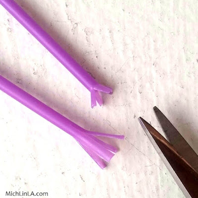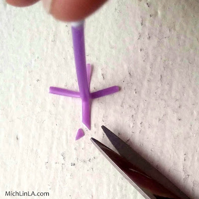 Snip the cotton blobs off a plastic Q-Tip. With your pointiest scissors, cut three or four slits in one end - long slits or short, to make different size flared ends.