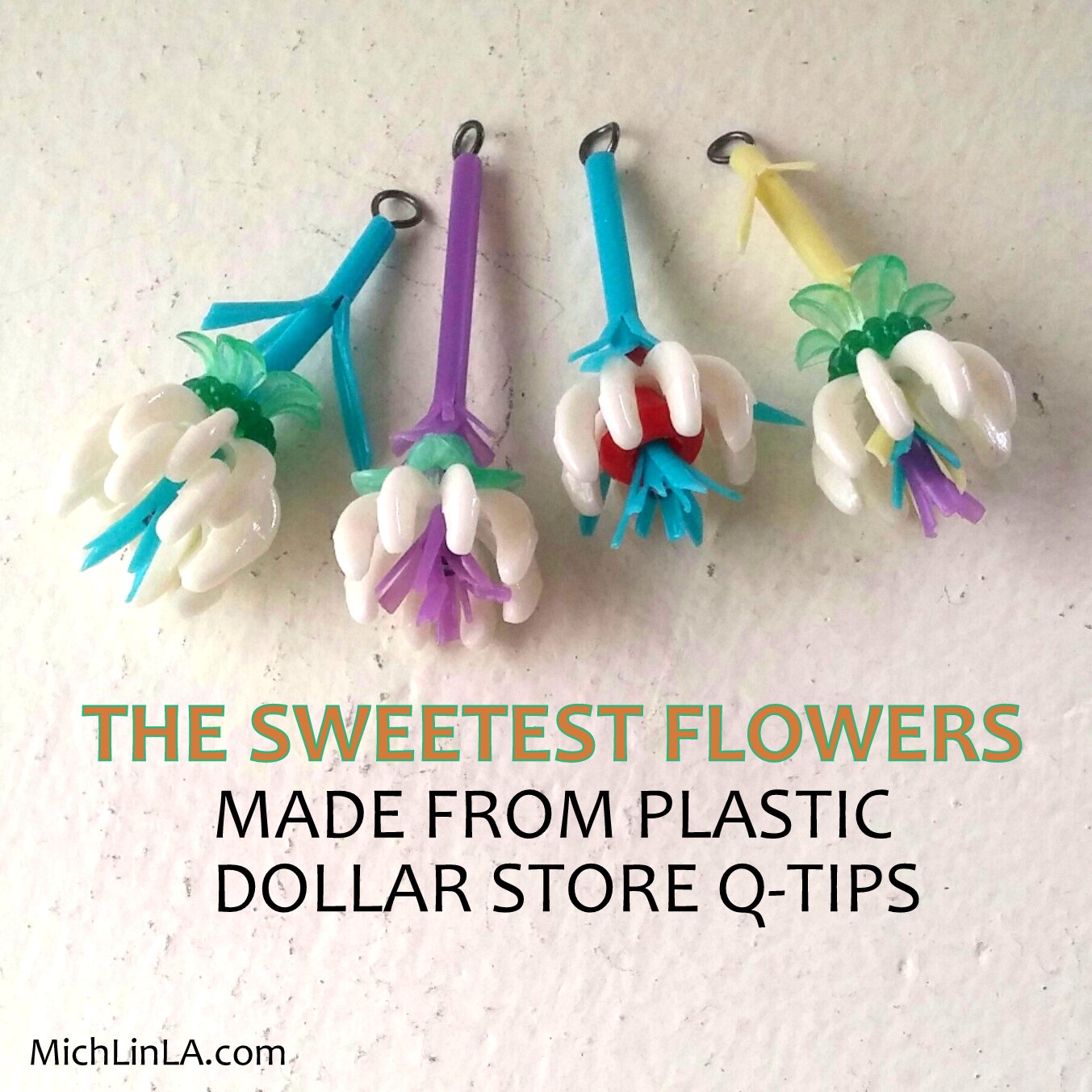 Some of you have no doubt guessed the upcycle: these inexpensive, brightly colored plastic Q-Tips.