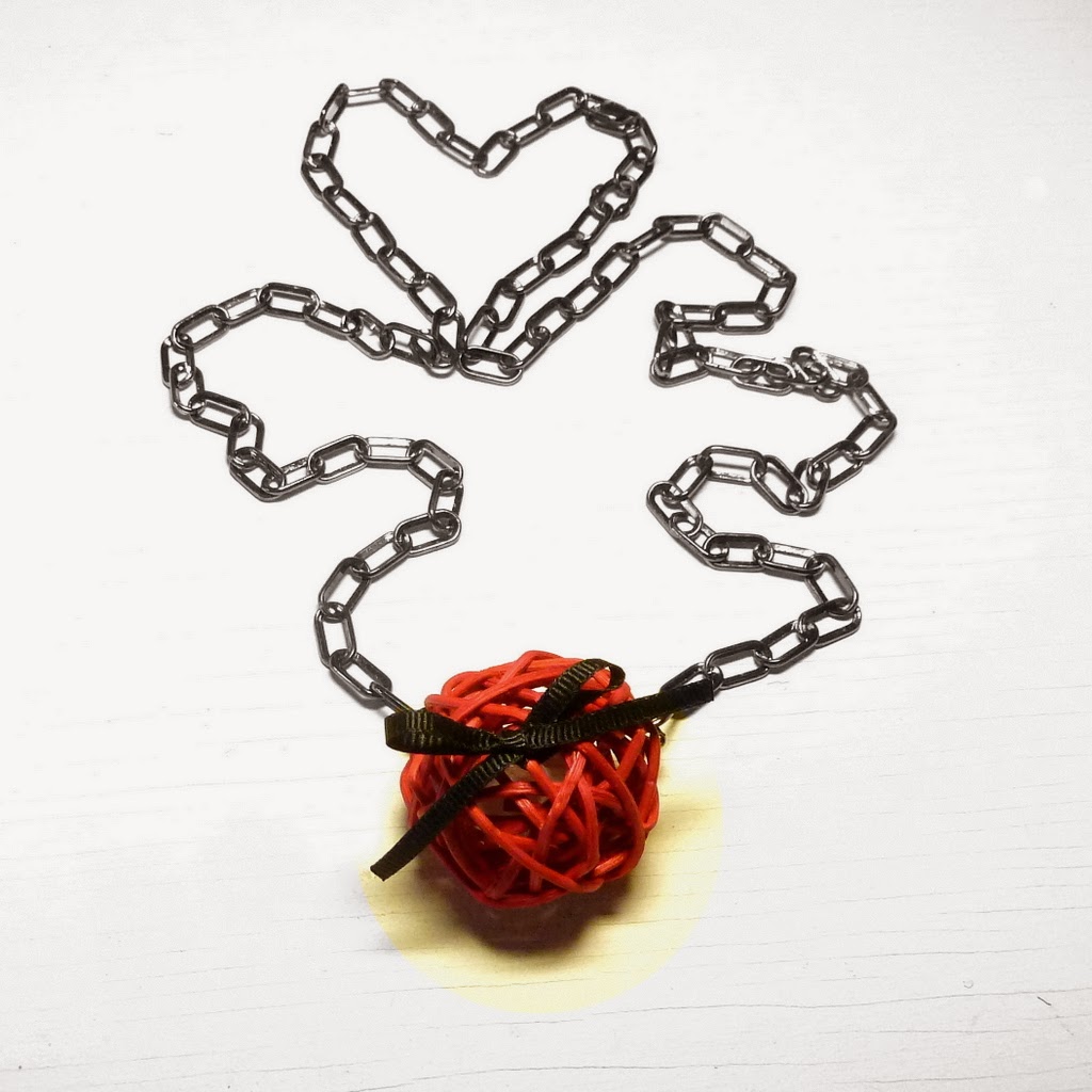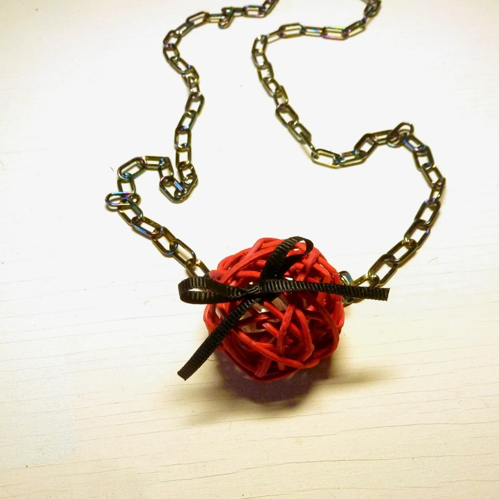 Now the necklace - another very easy one. I used some light plastic chain, which comes with its own linkers. (Of course you can use ordinary chain and jump rings instead.)