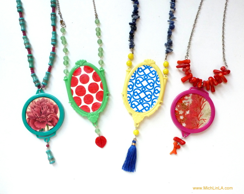 The perfect ready-made frame for a big, bold, Mod-podged pendant.