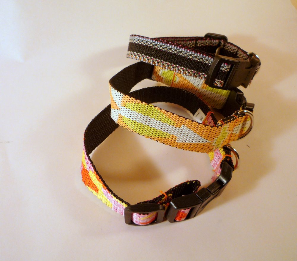Every so often, at the dollar store, I come across a pile of good quality pet collars and leashes. Like these, a recent score -