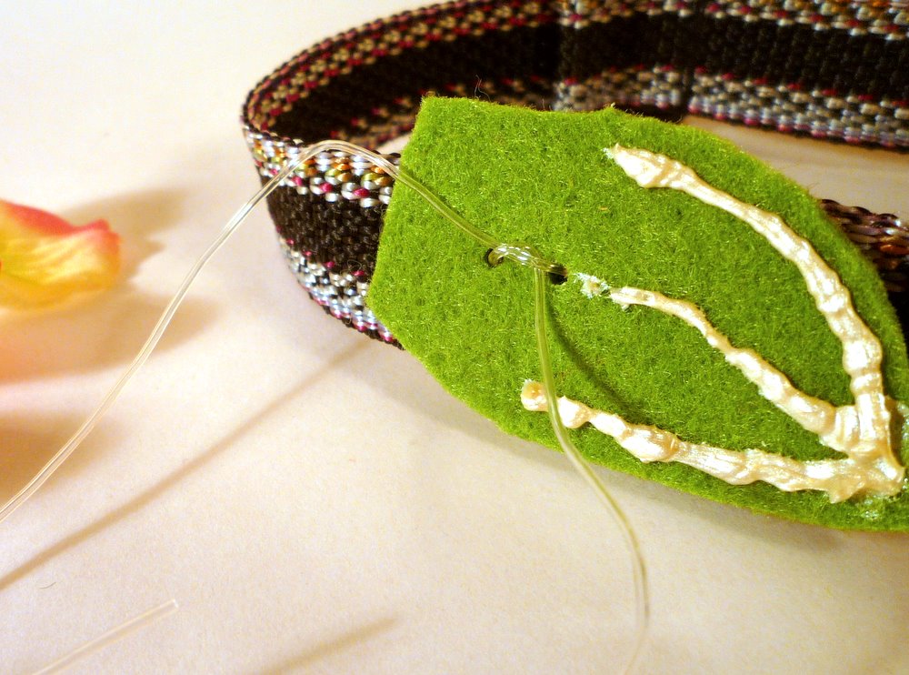 I used a little bit of craft wire as a needle, to help guide the ribbon where it needed to go.