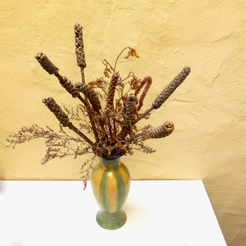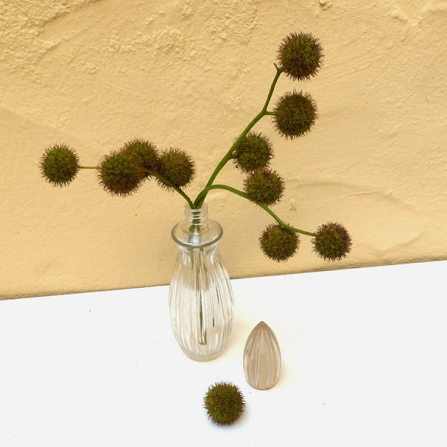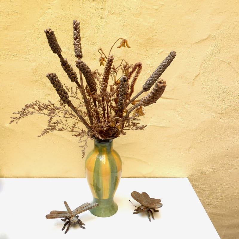 I went with a slightly different color scheme - I kept the teal and chartreuse, but added touches of bronze and antique silver.