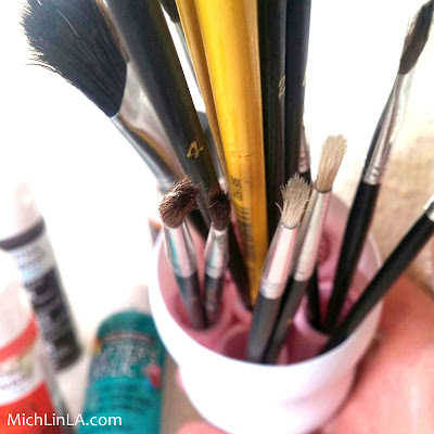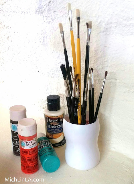 I dressed it up with a necklace, but it would be a perfect blank slate for decoupage, paint, glitter or whatever. Stuffed it full of hair rollers. Now it's a cool and supremely functional art tool caddy.