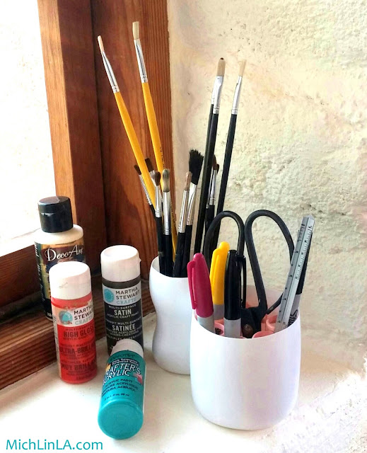 Hey, here's something I've been meaning to show you for a while. I have a lot of these ranged around my studio. Penny-pinching, earth friendly, practical jewelry displays...and they do brighten everything up!