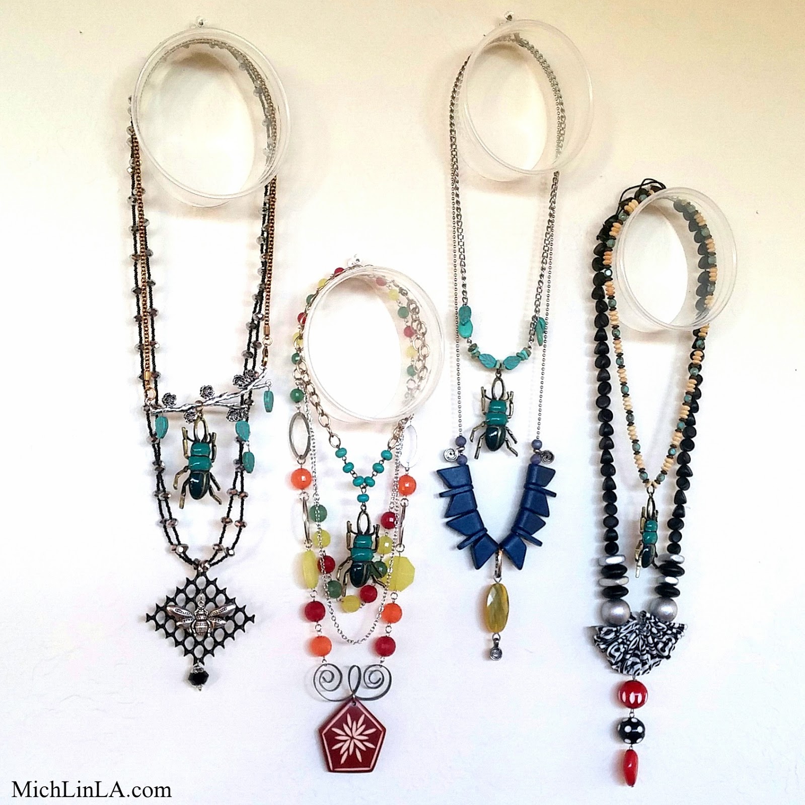 This is a big deal for me, as I'm deeply in the throes of creating a new craft studio in a loft room of my desert Southwest adobe fixer house. I sorely needed an unobtrusive way to show off lots of necklaces. The recycled element is just a wonderful bonus.
