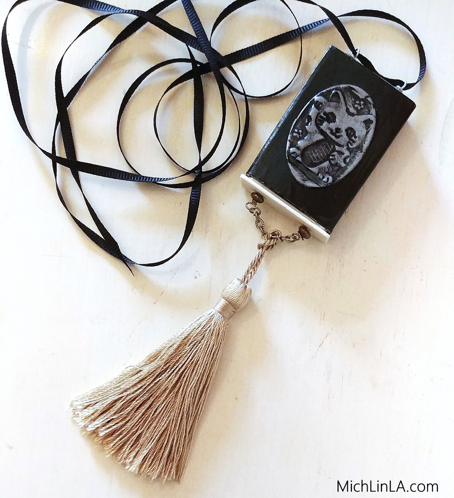 Greetings, friends! I propose that it's time to start thinking about handmade gifts. This recycled necklace gift can charm nearly anyone: a simple matchbox turned into a secret-compartment pendant.